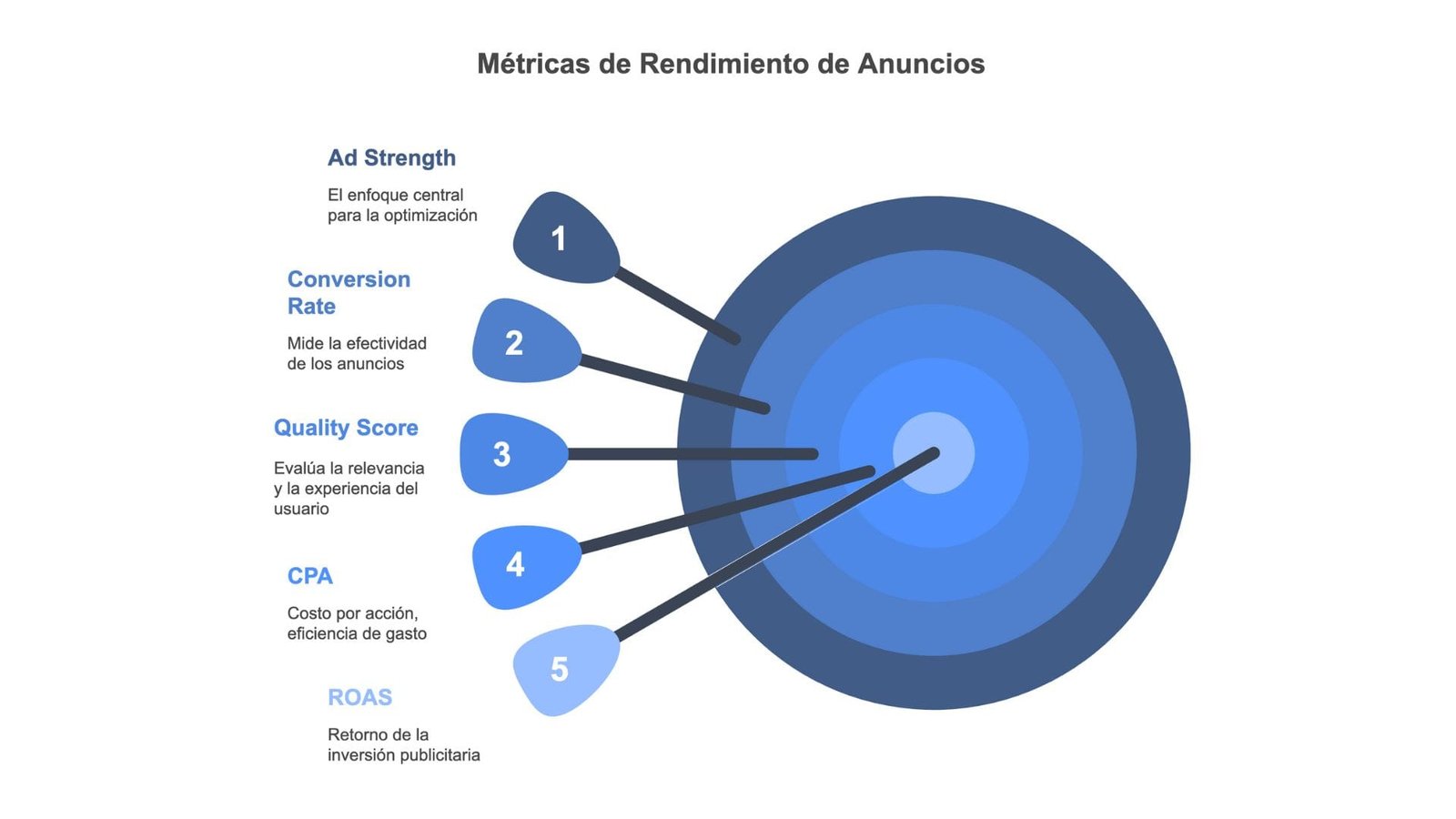 Combinar estas métricas ayuda a filtrar resultados falsamente positivos. A veces, una alta puntuación de Ad Strength puede no estar alineada con los objetivos reales de conversión del negocio. Por eso es importante hacer una lectura contextual.